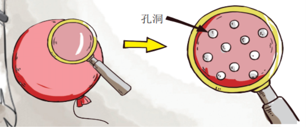 3.气球的表面并不是你想的那样密不通风,用放大倍数很高的放大镜来看的话,气球表面也是有很多孔洞的。