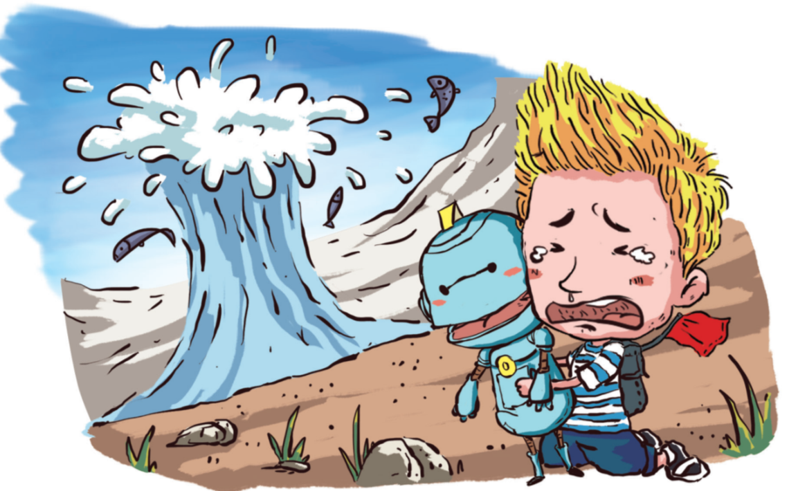 艾拉都能感到自己的心脏扑通扑通地乱跳,洞穴外面有机器杀手,洞穴里面有“水中怪兽”,这可怎么办啊?