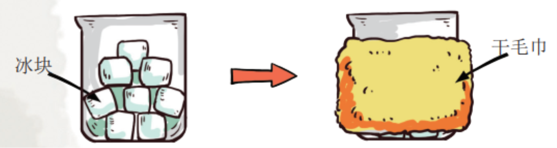 2.在烧杯中倒入冰块,用干毛巾裹住烧杯使其散热缓慢。