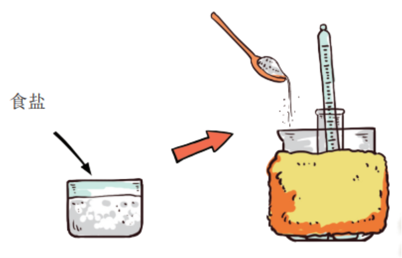 需要准备的材料:纯净水、冰块、烧杯、试管、温度计、食盐、干毛巾。