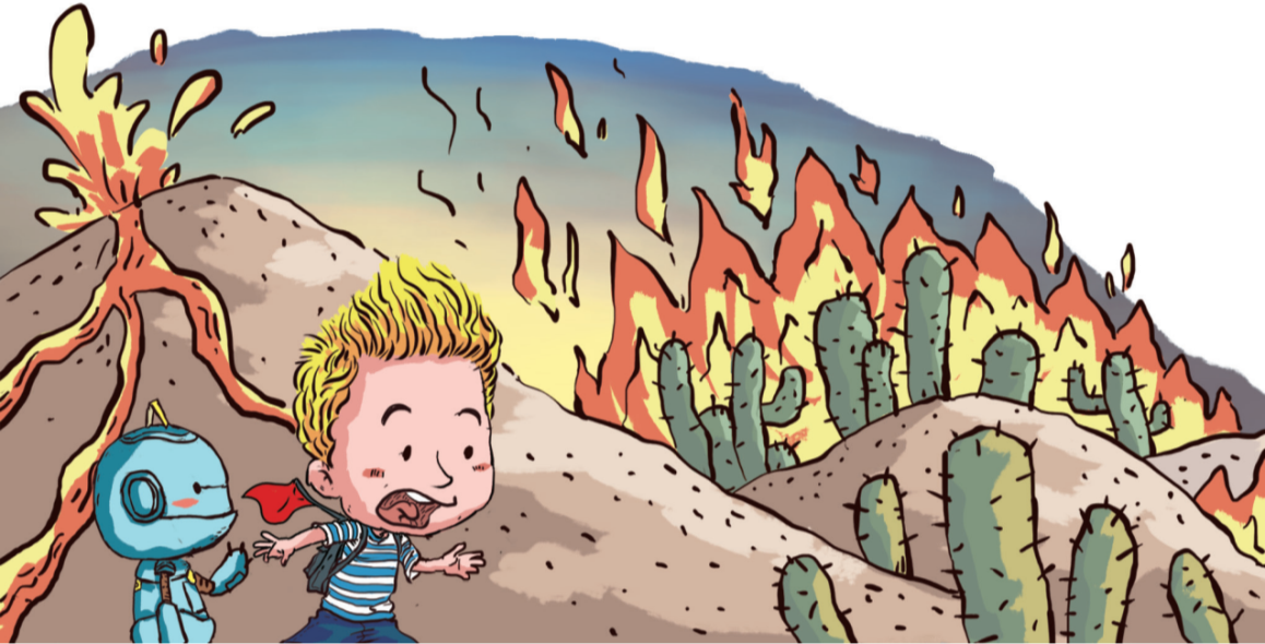 只见沙漠洞穴入口处的仙人掌丛林已经变成了一片火海,机器杀手正在疯狂地轰炸那里。