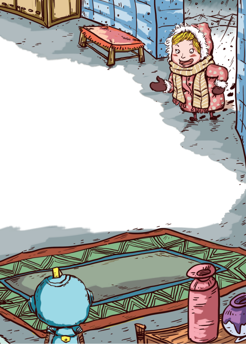 “我叫穆诺亚,是我把你从冰天雪地里救回来的。我是这个冰屋的主人,这个冰屋还是我造的呢!”女孩儿一叉腰,得意地回答。