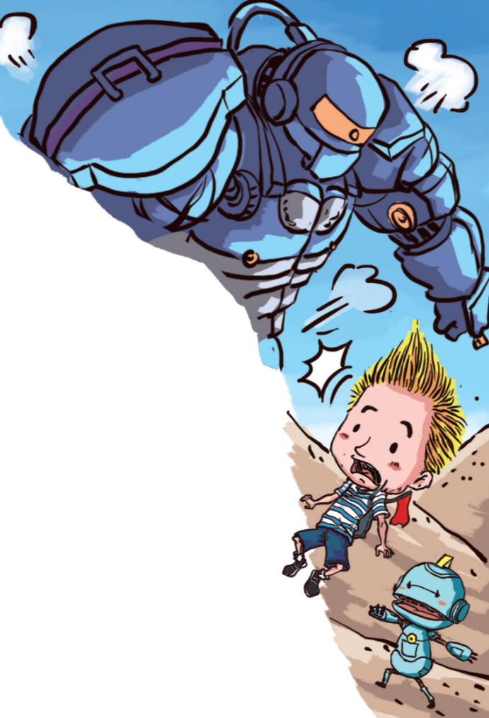 被机器杀手发现的同时,艾拉也第一次看到了机器杀手的完整样子,那是四个两米多高的机器人,挥舞着粗壮的手臂,半圆形的脑袋上只有冒着红光的独眼,不停地向四周放射出光线。刚刚照射到艾拉的正是机器杀手的搜索射线。