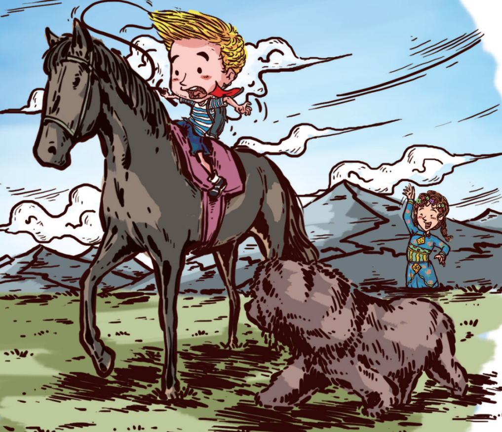 青藏草原一马平川,宽广又平坦,嫩绿色的草原覆盖着大地,像是给大地穿上了绿装。这不,美丽的藏族大姐姐朱玛正在教艾拉骑马呢!