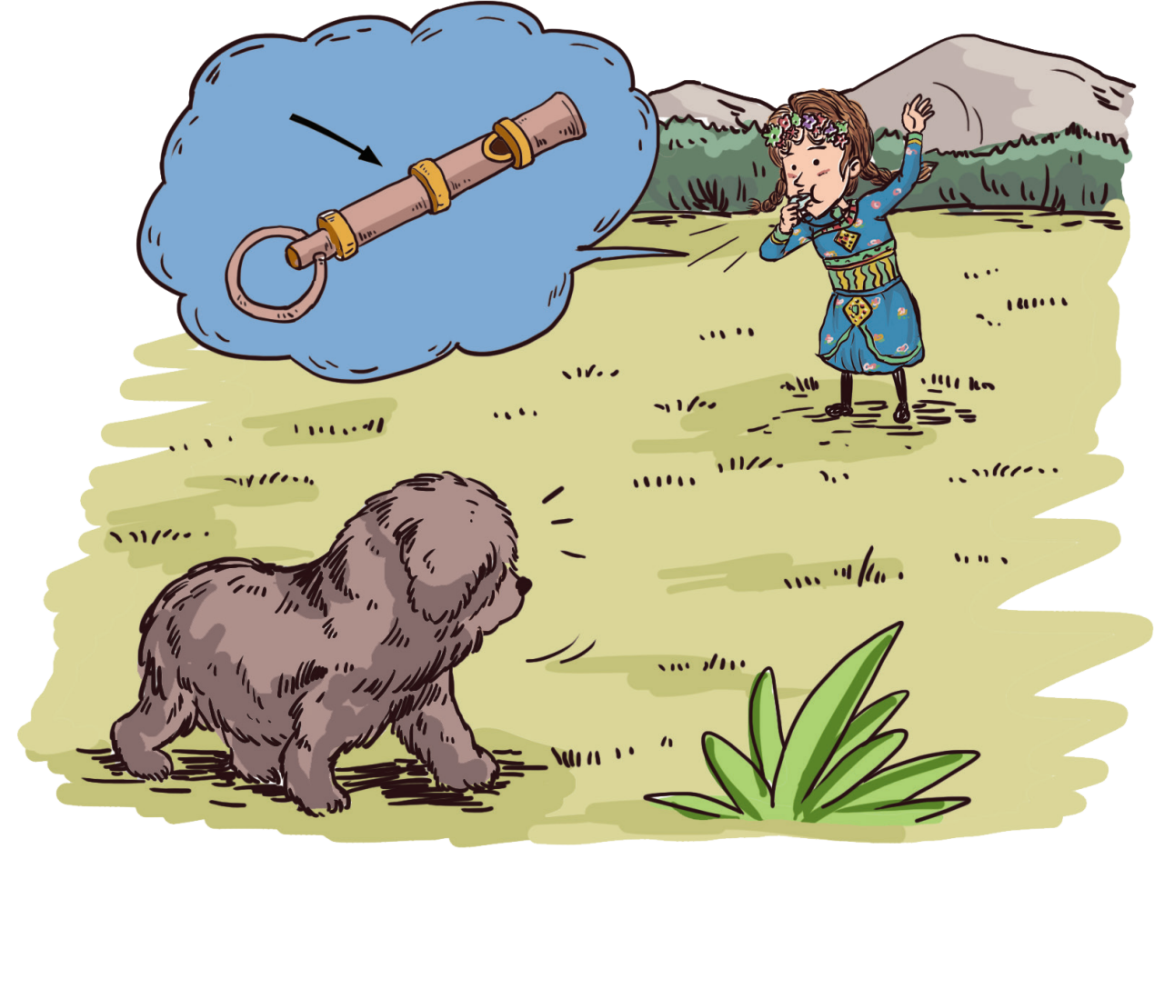 朱玛在后面看着着急,就从脖子上拿起一个哨子,放在嘴里一吹。奇怪的是,哨子没有发出一点儿声音,但远处的藏獒却耳朵一阵忽闪,像是接到了什么命令,猛地对着大黑马叫了好几声。
