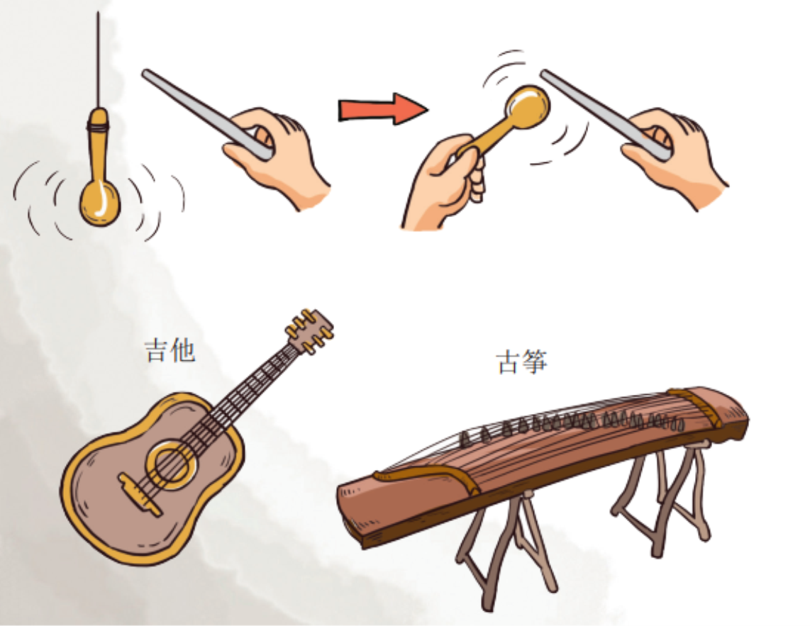 我们弹的吉他,还有传统乐器古筝,不都是通过琴弦的振动发出不同声音的吗?在演奏的时候,如果猛地把手掌按在琴弦上,阻止琴弦的振动,琴声也会立刻停止的。