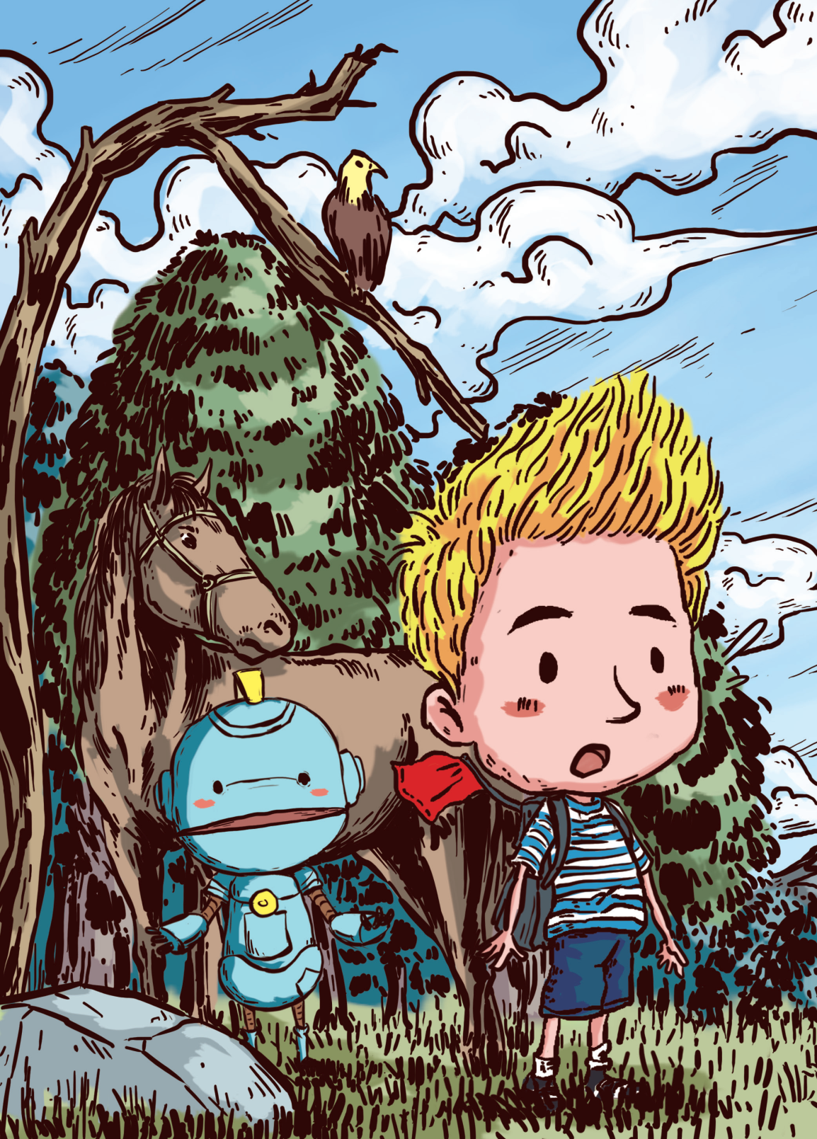“我一定会回来看你们的!”艾拉向两位老人家挥手告别,背上的书包里又多出了一堆老奶奶给他装的奶酪。