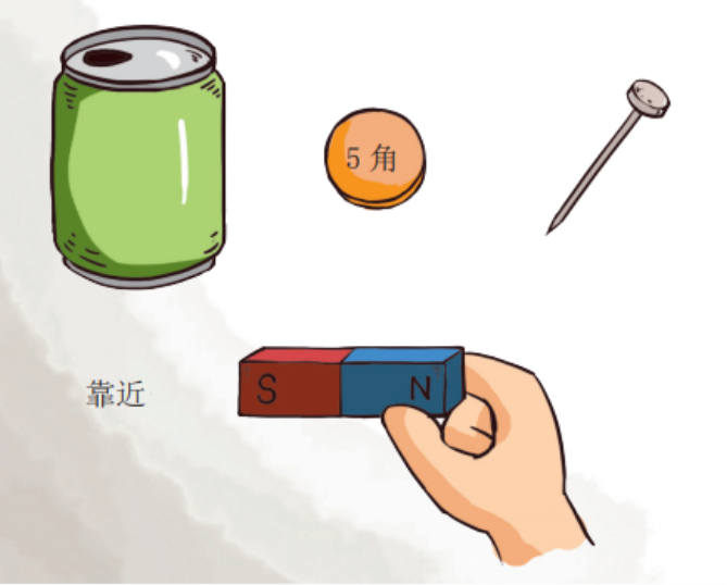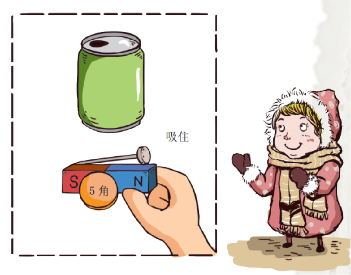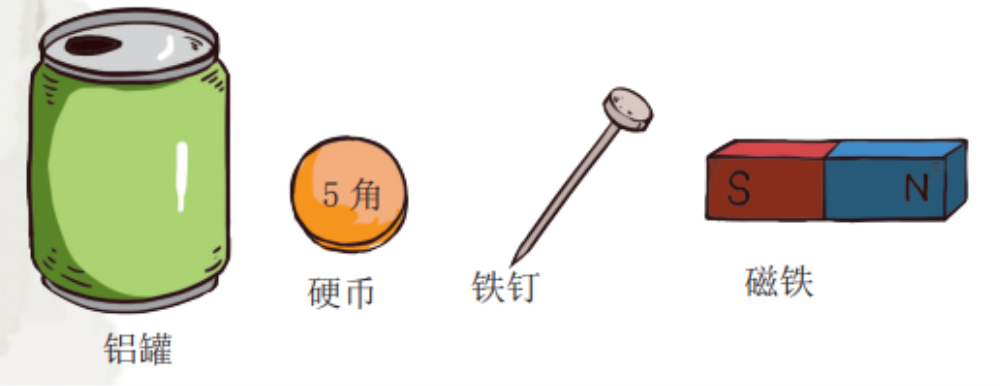 3.你是不是已经发现了,铁钉和5角硬币可以被磁铁吸引,但是铝罐却不行?