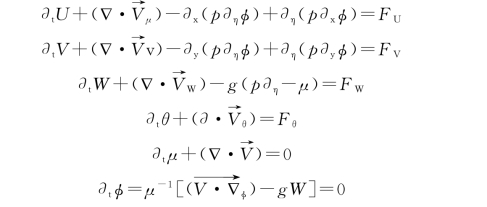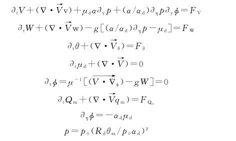 WRF模式采用的是地形跟随质量垂直坐标系统,采用Laprise推导方法,方程采用气压地形跟随坐标,垂直质量坐标η 的表达式为