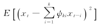 用最小二乘法估计参数ψ1,…,ψp,就是在已知N 个样本序列值的条件下,选取参数ψ1,…,ψp,使残差平方和(x t-ψ1 x t-1-…-ψp x t-p)2 尽可能达到最小值。