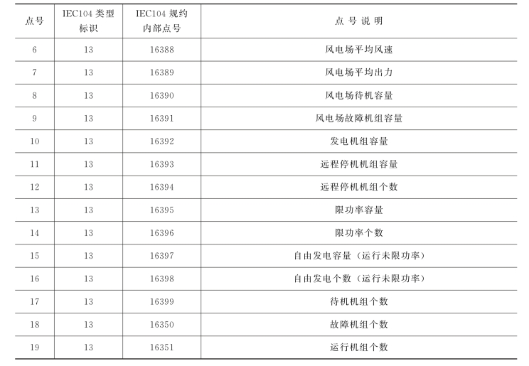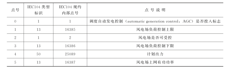 集中监控中心展示的电站功率控制系统关键数据,使得在集中监控中心就可以了解到电站限电情况和限电控制效果,方便区域公司统计下辖所有电站的限电情况;接收并存储电站功率控制系统收到的电网有功控制指令;接收并展示电站功率控制系统上传的调度数据,通信点表举例见表2-3;接收并展示电站功率控制系统的实际控制效果曲线。