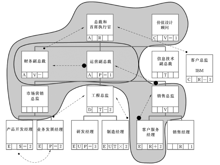 影响力分析的关键工作是识别项目中各相关人员之间的影响力。必须注意的是,影响力连线不一定会按照组织结构的汇报关系,往往是跨级别或跨部门的。