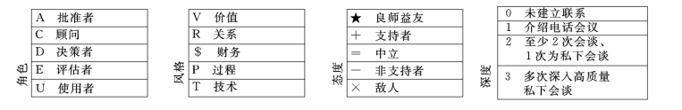 在影响力识别过程中,首先分析目标客户内部项目相关人员的参与角色、个人风格、当前态度、接触深度。影响力分析模型各个维度解释如图4-23所示。