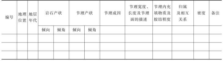 (3)节理所在的岩层时代或层位、岩石的性质、岩层的产状要素。