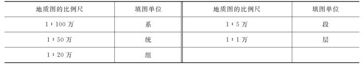 (1)填图单位的确定。填图单位是在填图过程中应勾绘的最小地质体或最小地层单位。它决定于所填地质图比例尺的大小。原则上规定各种地质体在地层图上能达到1mm的宽度就应划出来,但对一些重要的地层、矿体则不受此限制,可夸大绘出。所以一般来说,比例尺越小,填图单位越大;比例尺越大,填图单位越小、越详细。常见地质图的比例尺大小及填图单位见表2.3。