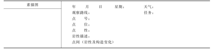 (4)其他地质点:其他类型的观测点亦有不同的描述内容,如侵入体接触点、矿产点、水文点。记录表格式见表2.4。