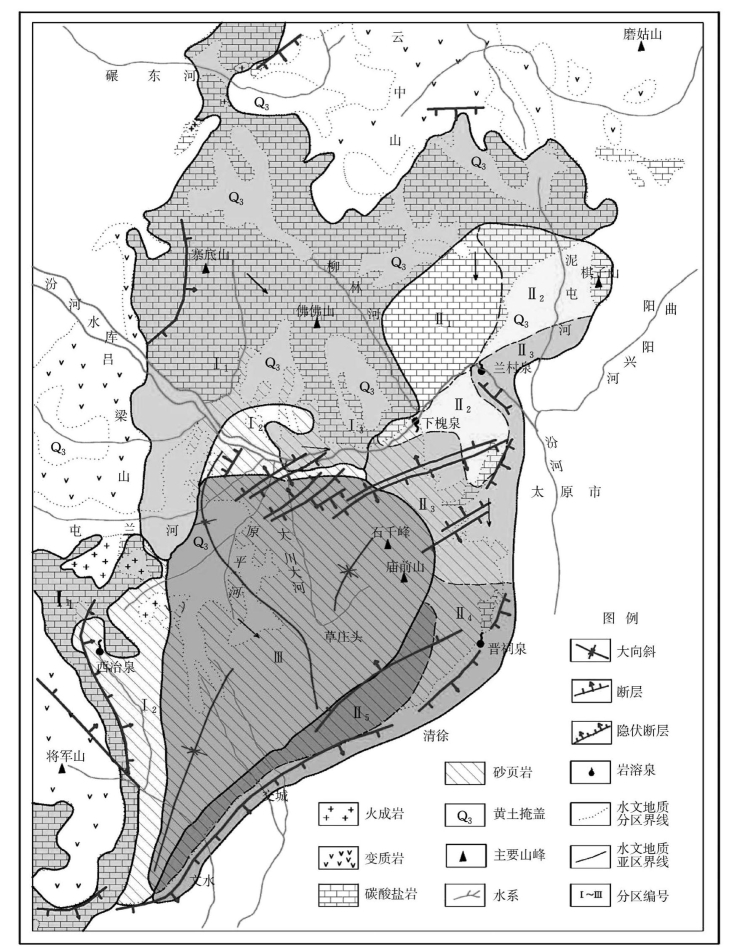 图4.5 太原西山岩溶水文地质分区图