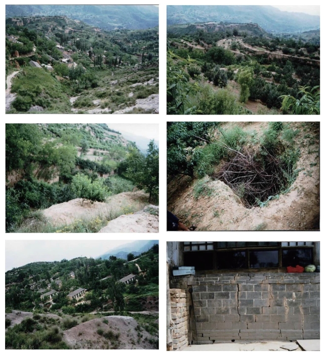东孟地裂缝位于水峪贯镇东孟村,地貌为低中山区,地形陡峻,沟谷切割强烈。地表出露第四系上更新统黄土,下伏石炭、二叠系砂页岩、泥岩、灰岩及煤层。东孟村及其附近地区从20世纪70年代开始,先后共有9座煤矿开采,属于东社矿区。主要开采石炭系太原组中部8号、9号煤层,埋深为50~60m,从80年代开始,采用炮采法开采。因采空区顶板冒落变形、延伸到地表形成地裂缝。地裂缝地质灾害于1995年开始在田地出现。