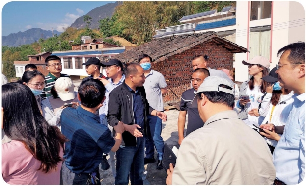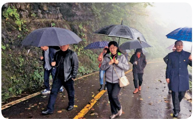 6月17日,县委副书记陈霖(前排左二)陪同东西协作东莞市黄江镇领导到牛街镇调研脱贫攻坚工作(供图:县委办公室)