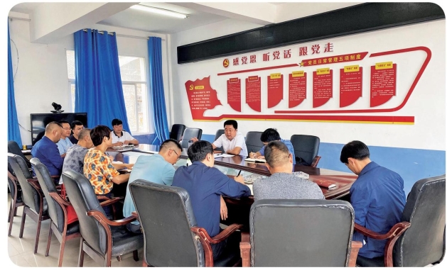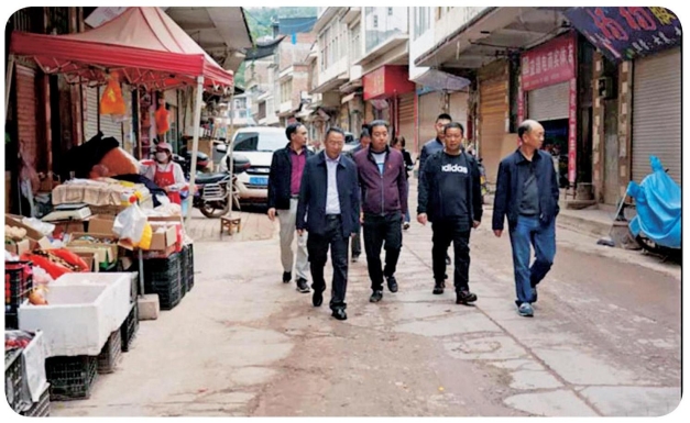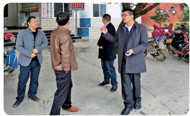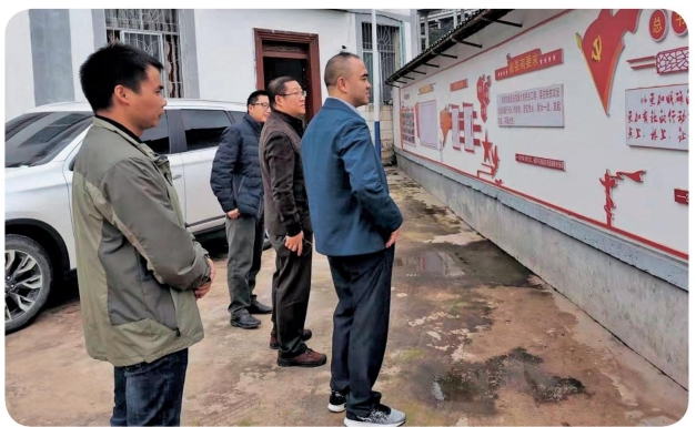10月11日,县委副书记罗光华(右一)在洛泽河镇检查党建工作(供图:洛泽镇党政办公室)