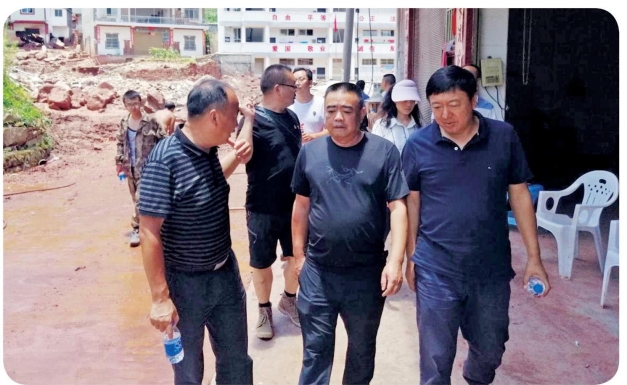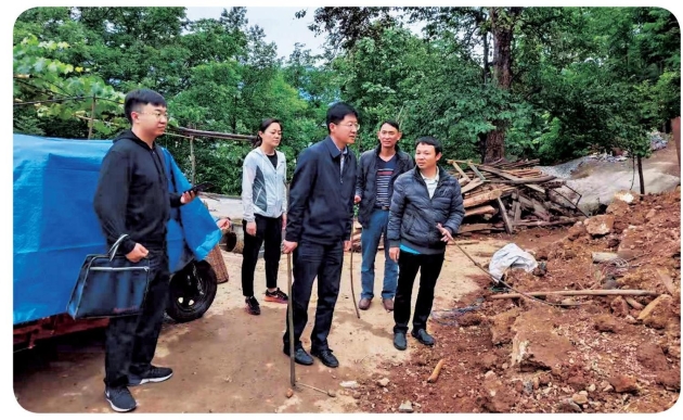 7月2日,市自然资源和规划局局长吴家明(右一)到洛旺乡木营村查看“6·30”洪灾滑坡情况(供图:洛旺乡党政办)