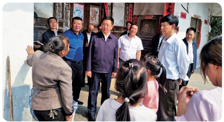 4月14日,省民政厅副厅长张良玉(右二)到县挂牌督战脱贫攻坚工作(供图:县民政局)