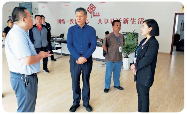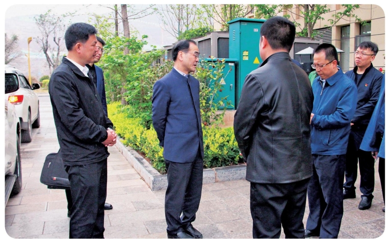 4月17日,市委副书记朱家伟(右一)到团结社区检查指导工作(供图:县搬迁安置局)