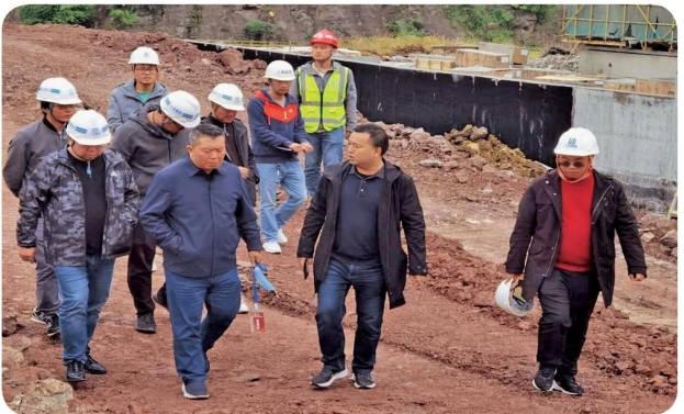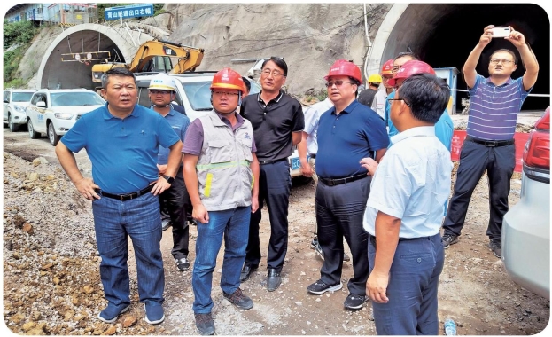 6月28日,市长郭大进(左五)一行调研宜昭高速洛泽河特大桥及螺旋隧道等控制性工程建设进度 (供图:县委办公室)