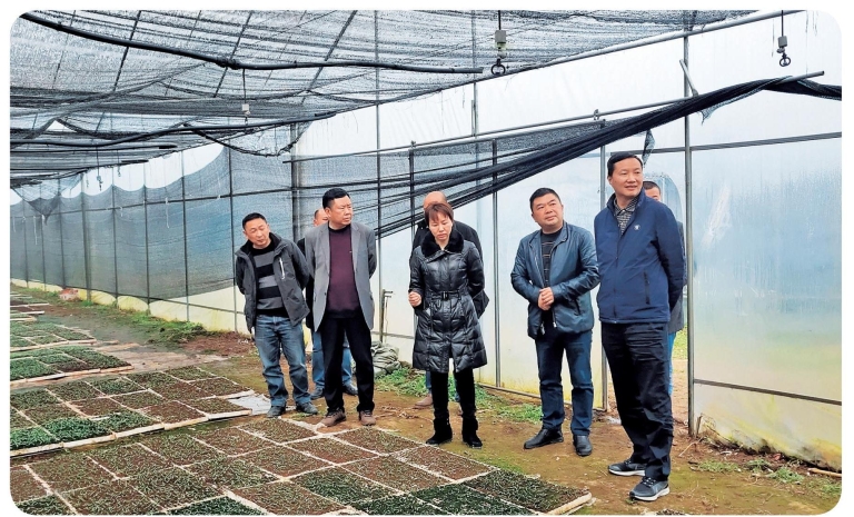 3月13日,县委副书记陈霖(右一)到龙街、奎香、树林乡调研高原特色产业发展情况(供图:县委办公室)