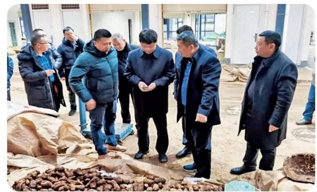 12月15日,省商务厅党组书记、厅长赵瑞君(右四)到彝良调研天麻产业发展情况(供图:彝良县融媒体中心)
