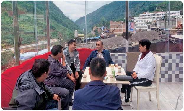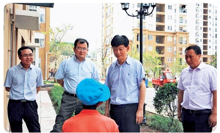 8月30日,市委书记杨亚林(右二)到发界安置点调研脱贫攻坚成果巩固提升情况(图片来源:《昭通日报》)