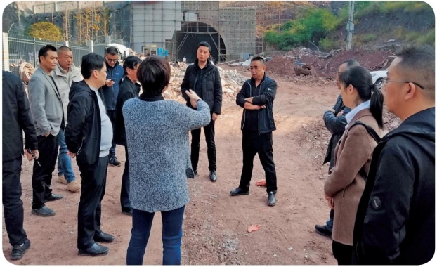 11月11日,县委常委、副县长张莹(右四)带领相关部门到天立学府华庭、旭航房地产、创业山隧道出口、彝良三中调研县城与宜昭高速公路连接线建设相关工作(供图:县委办)