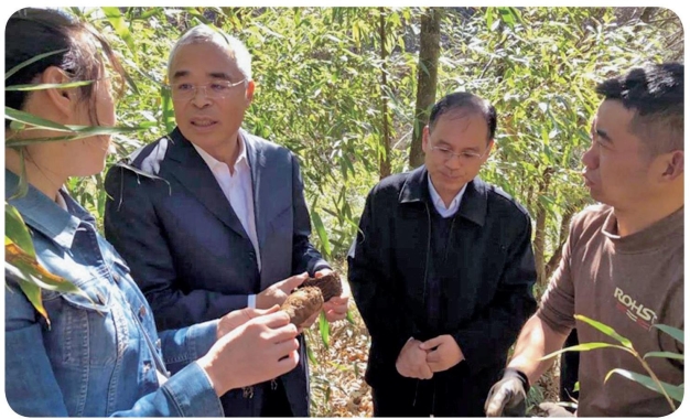 11月16日,广西河池市委副书记、市长唐云舒(左二)到彝良调研天麻产业和竹产业发展(供图:彝良县融媒体中心)