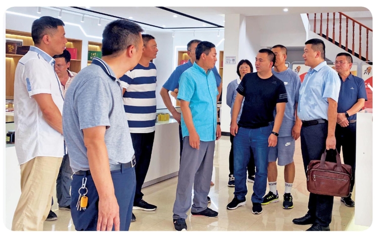 8月7日,市人大常委会主任张绍雄(前排右三)到山益宝公司调研科技企业建设工作(供图:县开投公司)