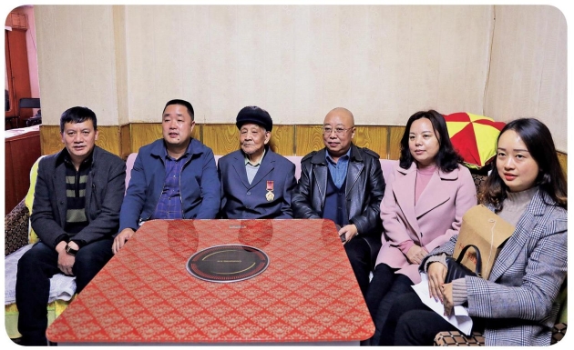 10月22日,县委常委、组织部部长陈皓霁(左二)慰问抗美援朝老战士郭室弼(左三)(供图:县委办公室)