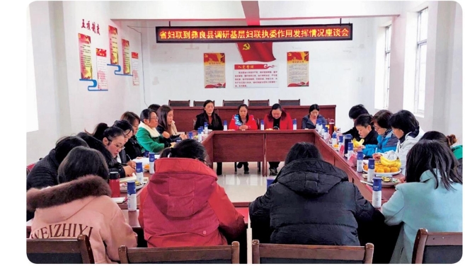11月4日,省妇联赴彝良调研基层妇联执委作用发挥情况。图为在小草坝镇召开座谈会(供图:小草坝镇党政办)(供稿:县残联)