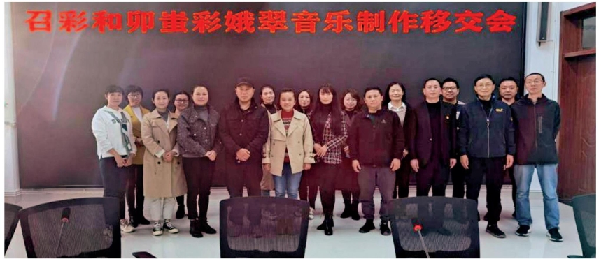 11月9日,县文旅局举行《召彩与卯蚩彩娥翠》音乐制作移交会。前排左四为音乐制作人廖仕伟(供图:县文旅局)