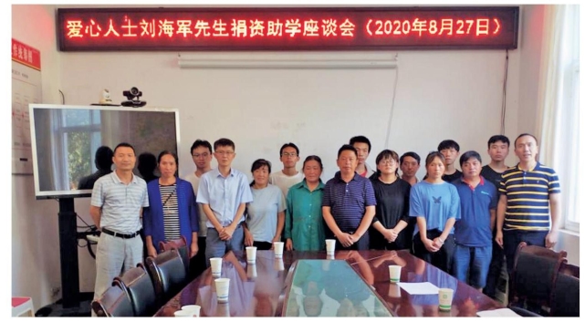 12月27日,龙安镇召开爱心人士刘海军先生捐资助学座谈会,刘海军连续五年累计资助贫困学生56名、捐献善款32万元(供图:龙安镇党政办)