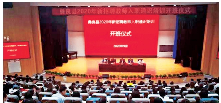 9月26日,彝良县2020年新招聘教师入职培训开班仪式在彝良天立学校举行。来自全县各中小学、幼儿园新招聘的579名教师参加培训 (图片来源:公众号“微彝良”)