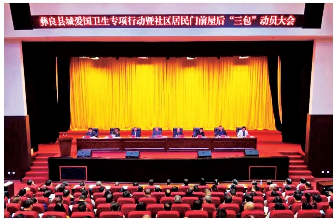 10月19日,彝良县城爱国卫生专项行动暨社区居民门前屋后“三包”动员大会在会议中心召开(供图:融媒体中心)