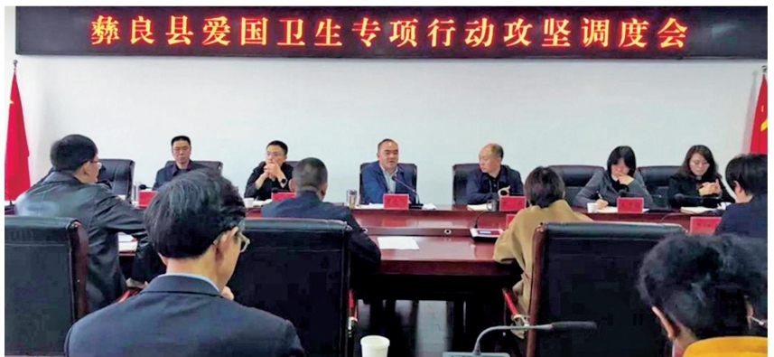 11月13日,彝良县召开爱国卫生专项行动攻坚调度会 (图片来源:县政府办公室)