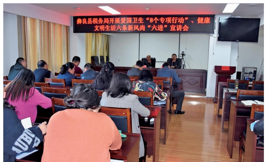 10月5日,县税务局召开爱国卫生“8个专项行动”、健康文明生活六条新风尚“六进”宣讲会(供图:县税务局)