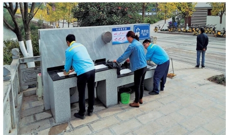新建的洛泽河大道小花园处洗手台(摄影:肖 勇)