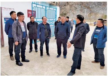 11月18日,县委副书记罗光华(左四)到角奎镇新场社区调研爱国卫生专项行动 (供图:县委办公室)