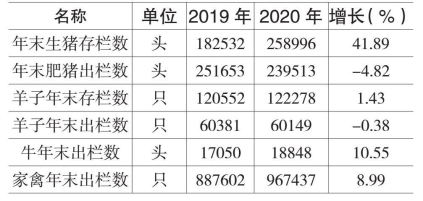 年末全县生猪存栏258996头,比上年增长41.89%;羊子存栏122278只,增长1.43%。年末全县出栏肥猪239513头,比上年下降4.82%;牛出栏18848头,比上年增长10.55%;羊子出栏60149只,比上年下降0.38%;家禽出栏967437只,比上年增长8.99%。