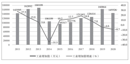 全县实现现价规模以上工业总产值253894.5万元,比上年下降9.8%(按可比价测算,下同)。全县实现工业增加值145526万元,比上年下降8.7%。其中:规模以上工业增加值91565.3万元,比上年下降9.8%。