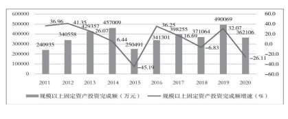 图6 2011-2020年彝良县规模以上固定资产投资完成额及增速