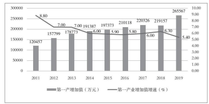 图3 2011-2019年彝良县第一产业增加值及增长速度