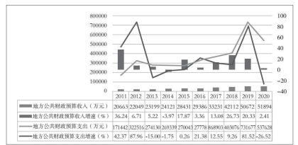 图7 2011-2020彝良县地方公共财政预算收入(支出)及增速