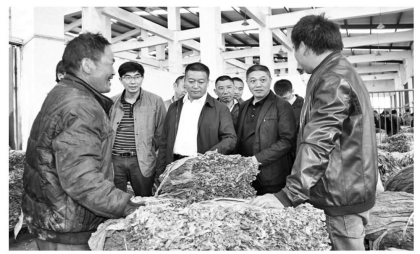 9月27日,县政府副县长李章和(左三)到龙街调研烤烟收购工作